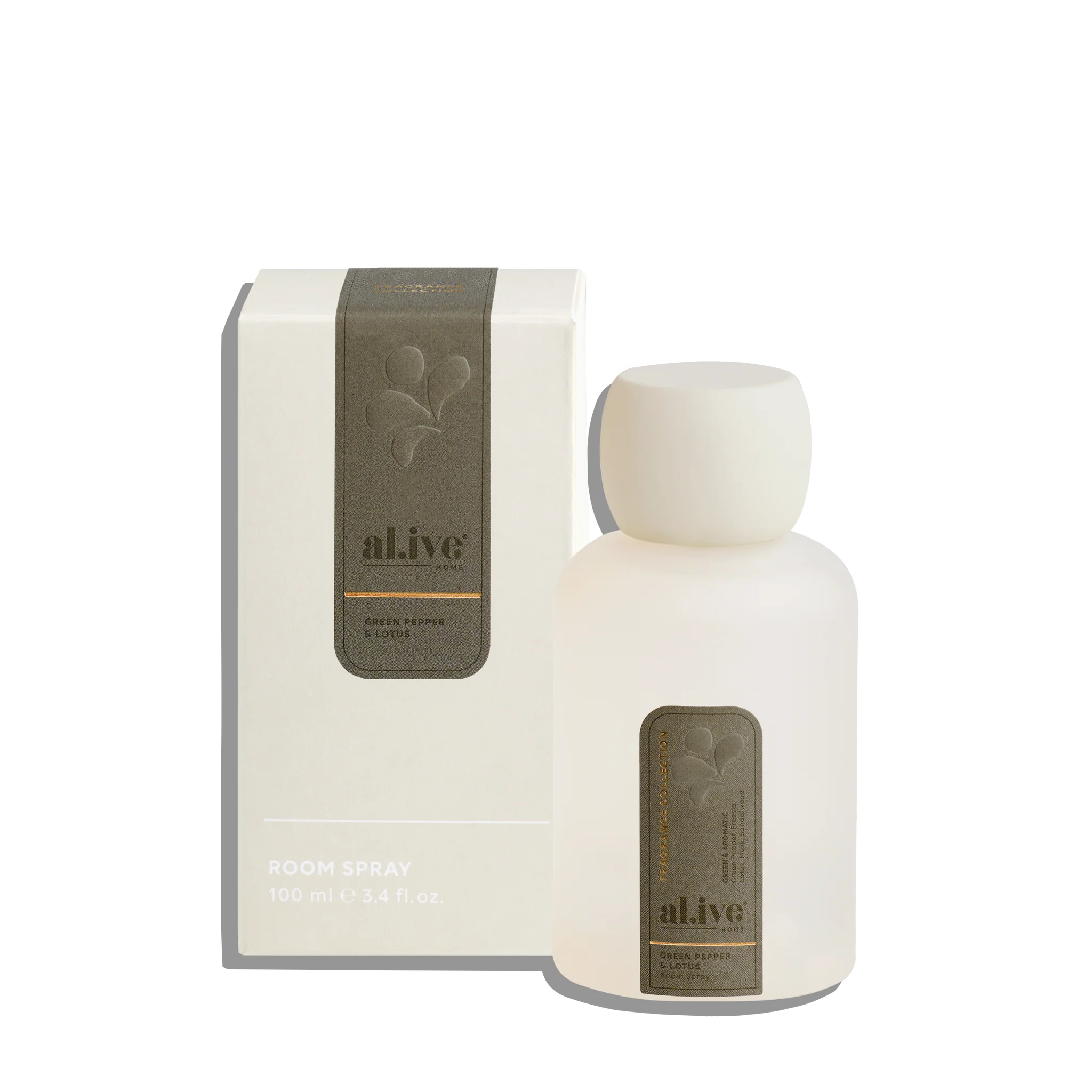 A sophisticated Room Spray offering crisp green pepper and fresh lotus with warm sandalwood depth. This modern floral blend provides immediate refreshment and a zen-like atmosphere.