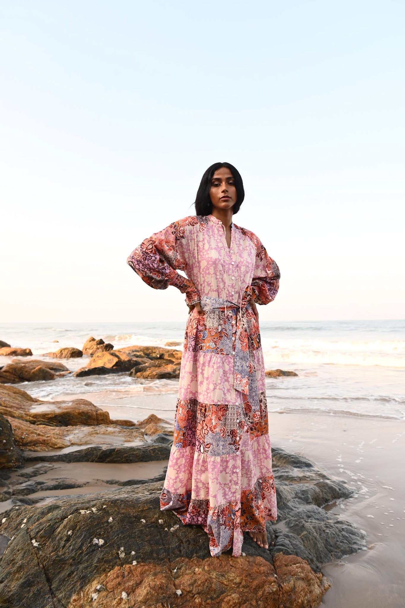 Long bishop sleeve with shirred cuffs
