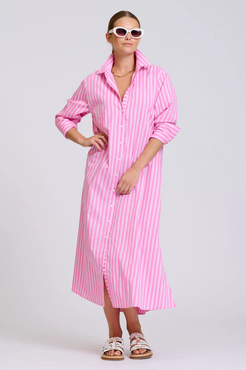 The Adele Shirtdress Double Pink Stripe