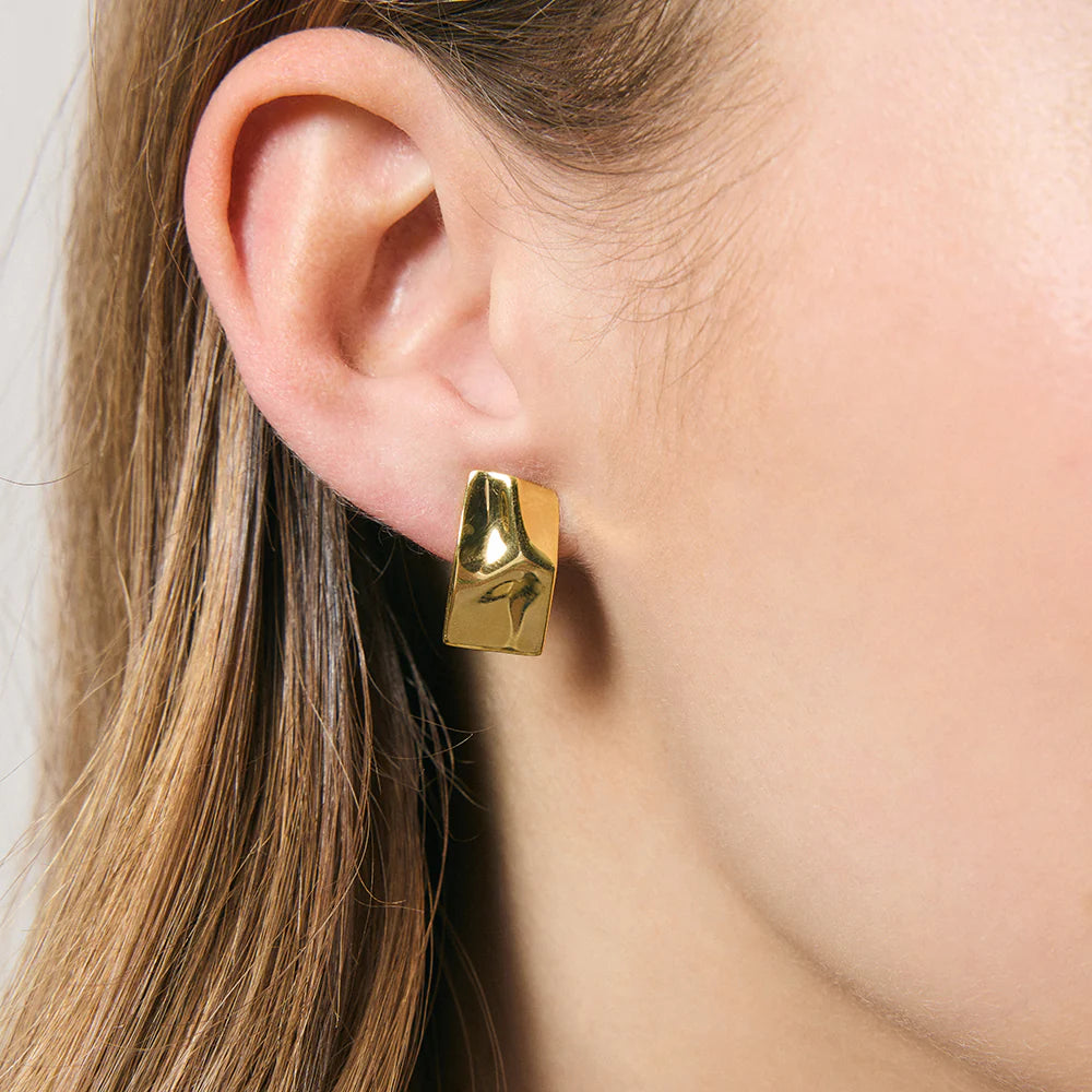The Gillian Earrings feature a rectangular shape with destressed gold detailing at the stud. A gorgeous and uniquely designed earring to elevate your jewellery collection.