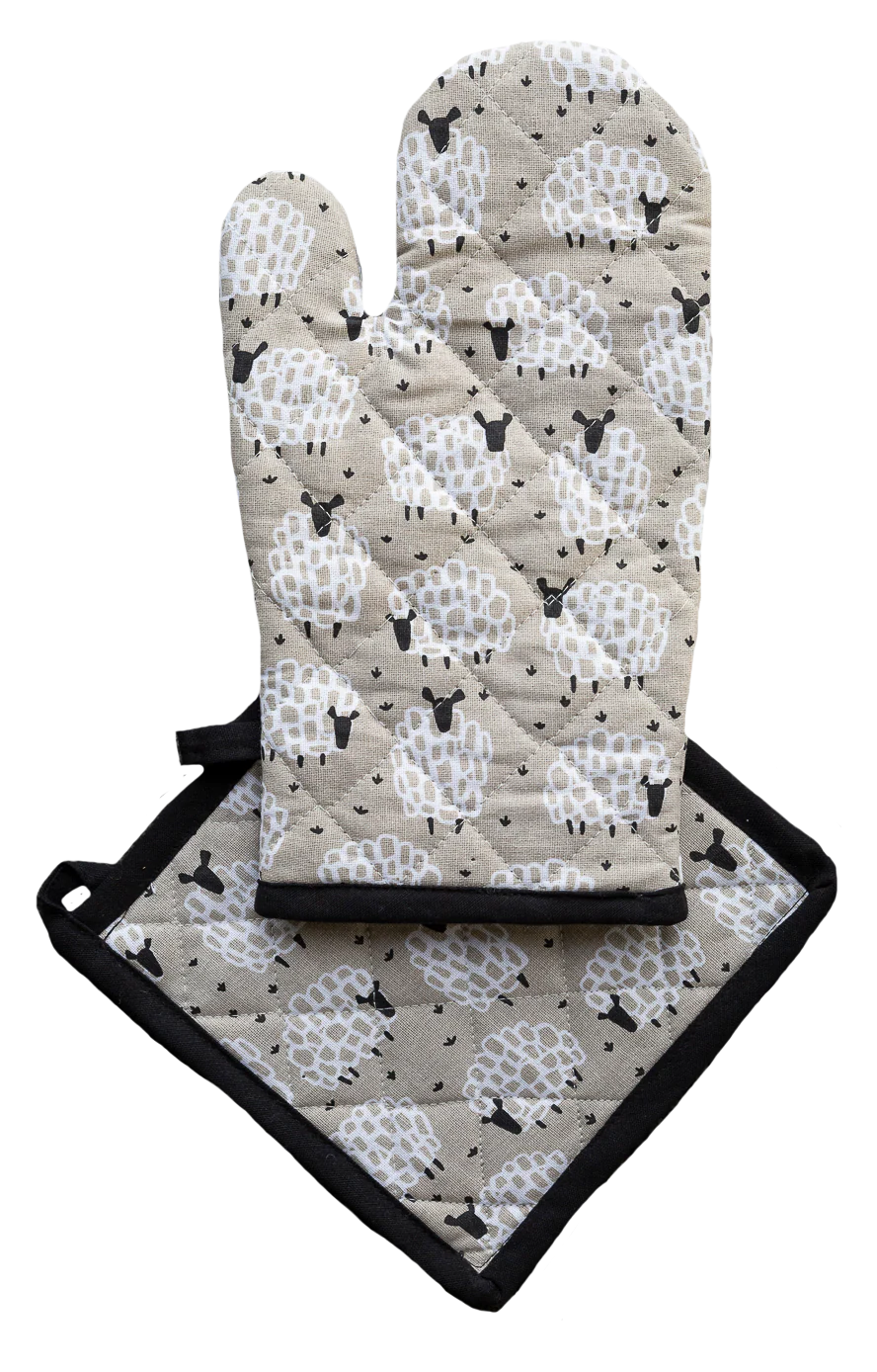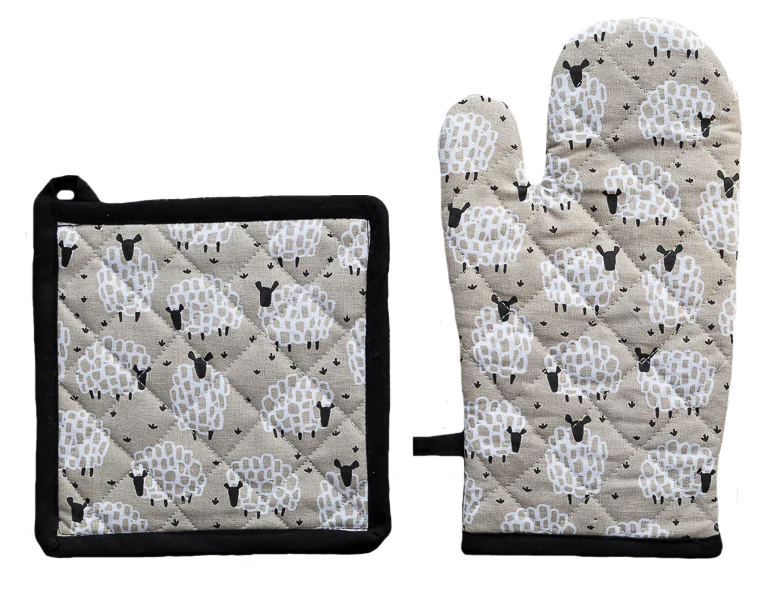 Oven Glove & Pot Holder Set Grey Sheep