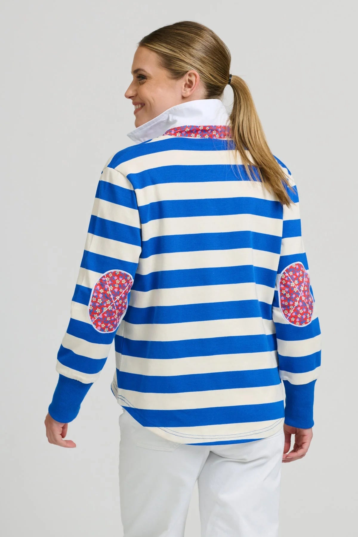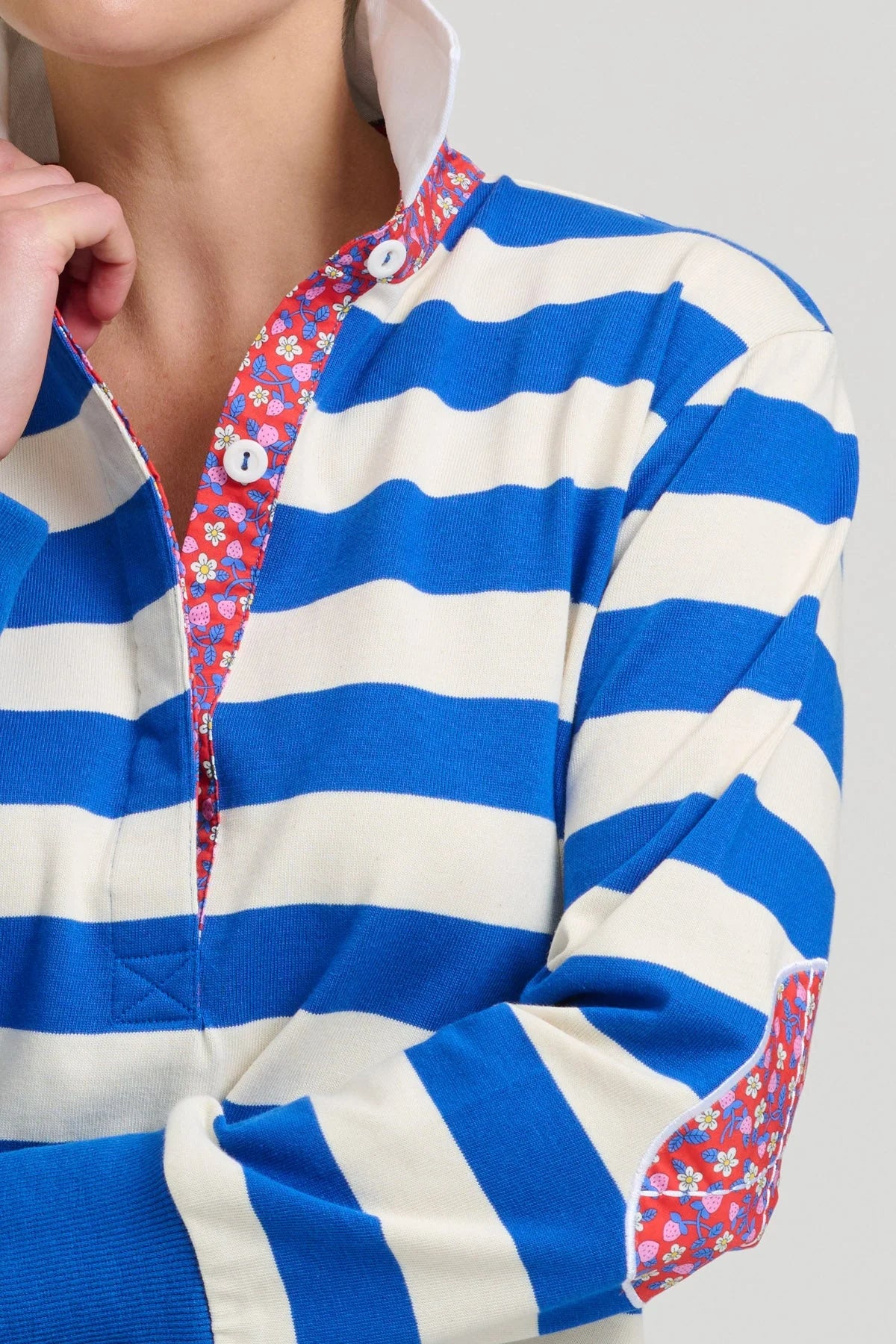 Your favourite RUGBY SWEATSHIRT gets a seasonal refresh, crisp cotton drill collar & placket, contrast elbows and neck detail & flattering High Low hem.