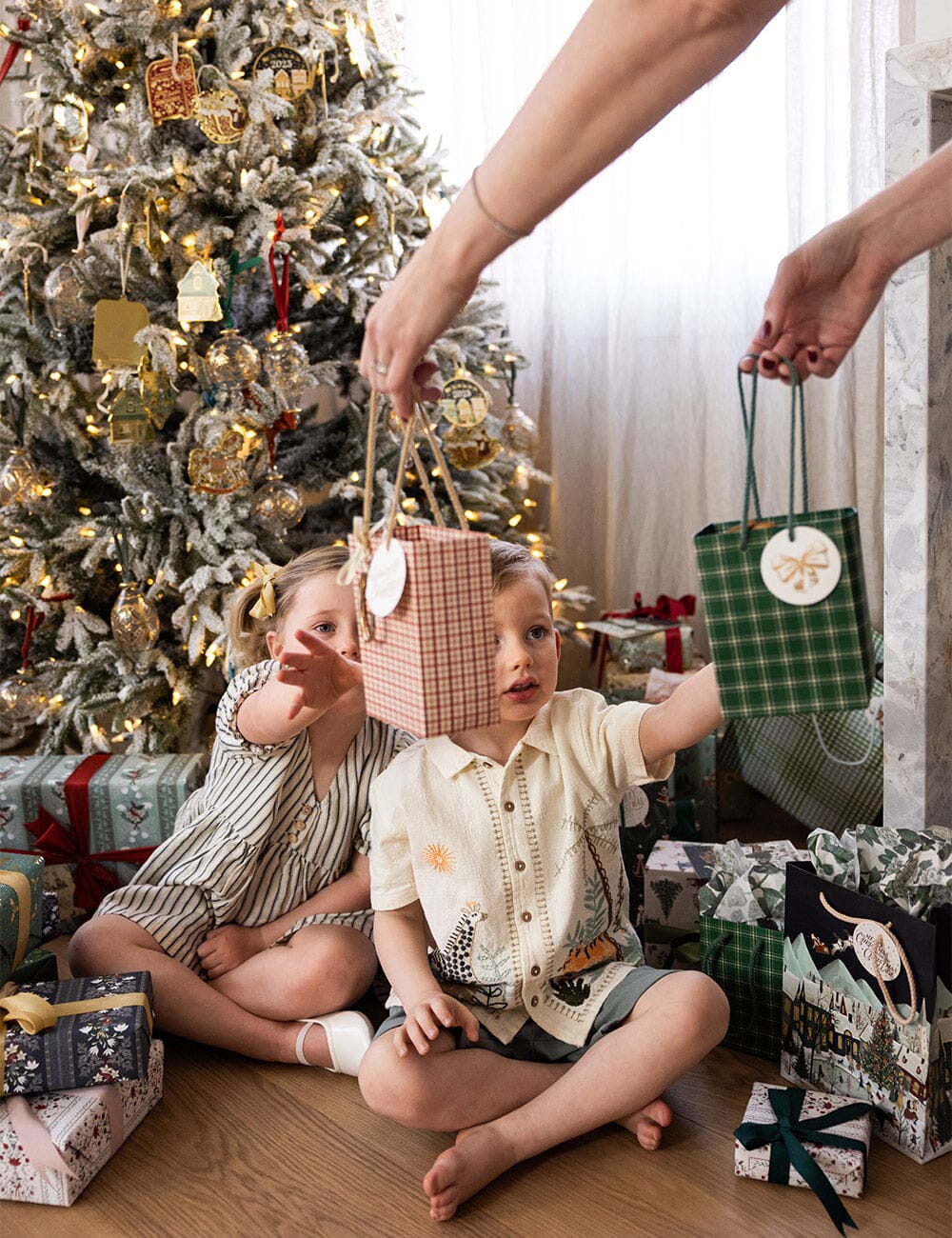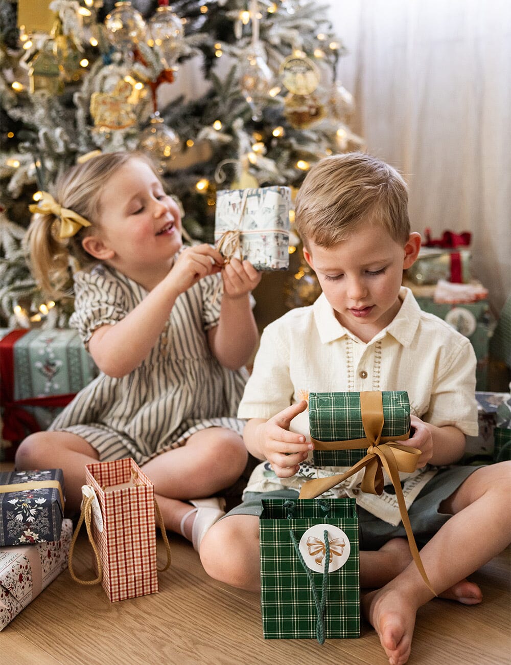 Environmentally responsible heavyweight stock with matt lamination, with foil printed gift tag and rope handle.