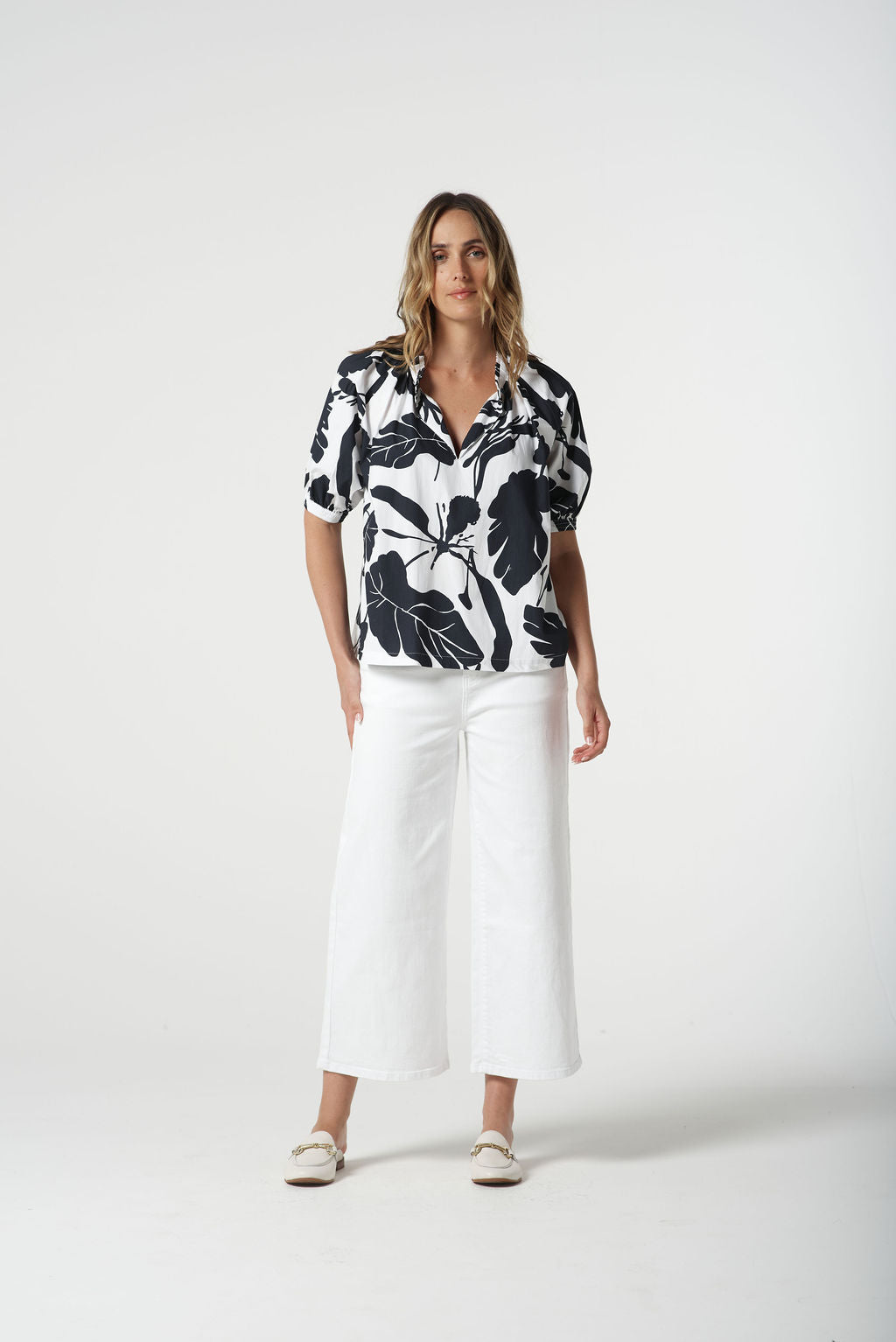 Block Leaf Print Shirt Navy Leaf