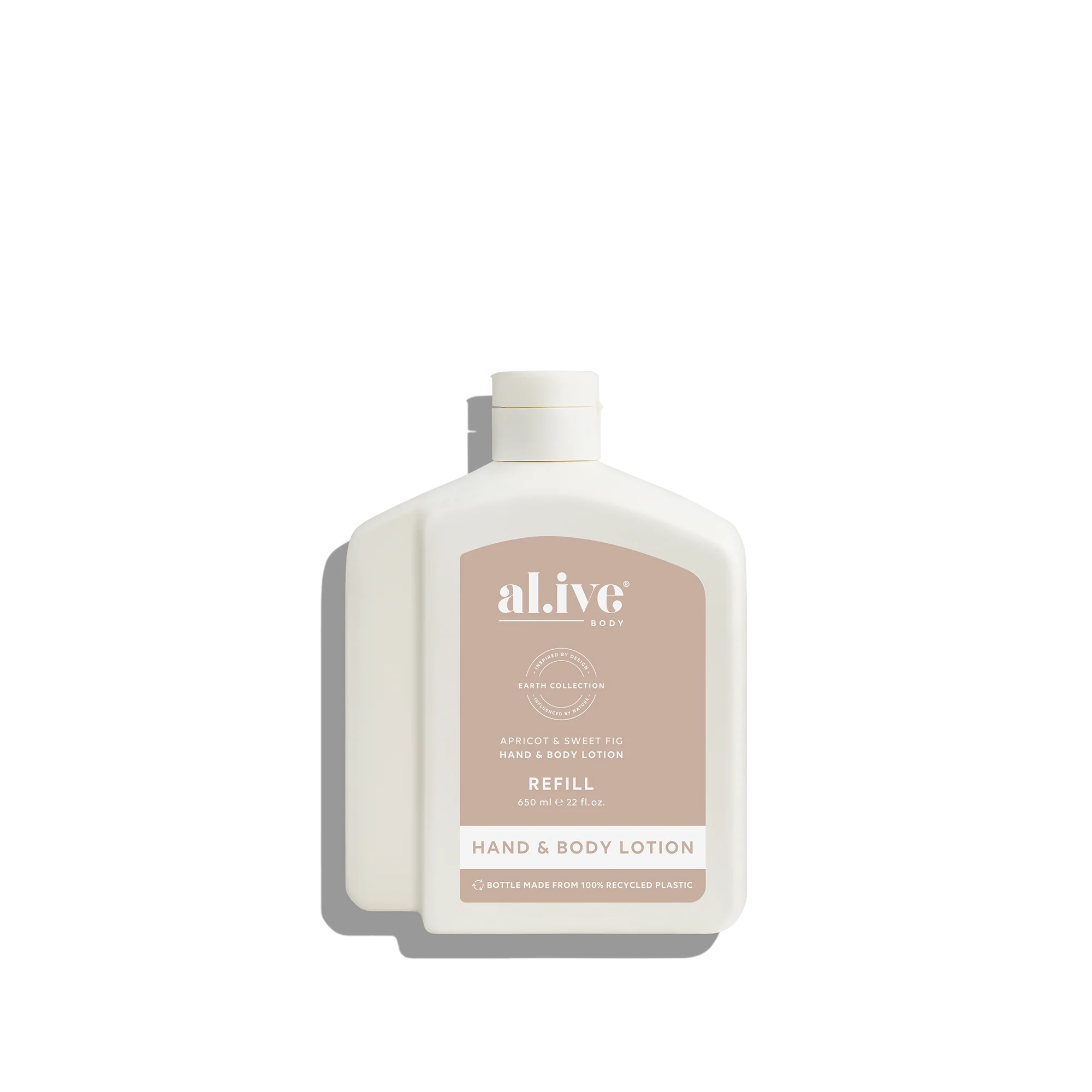Refill your Apricot & Sweet Fig Lotion bottle with our 650ml Lotion Refill. This sustainable refill solution is designed to reduce waste and offer a practical, eco-friendly way to top up your favourite al.ive body essential.