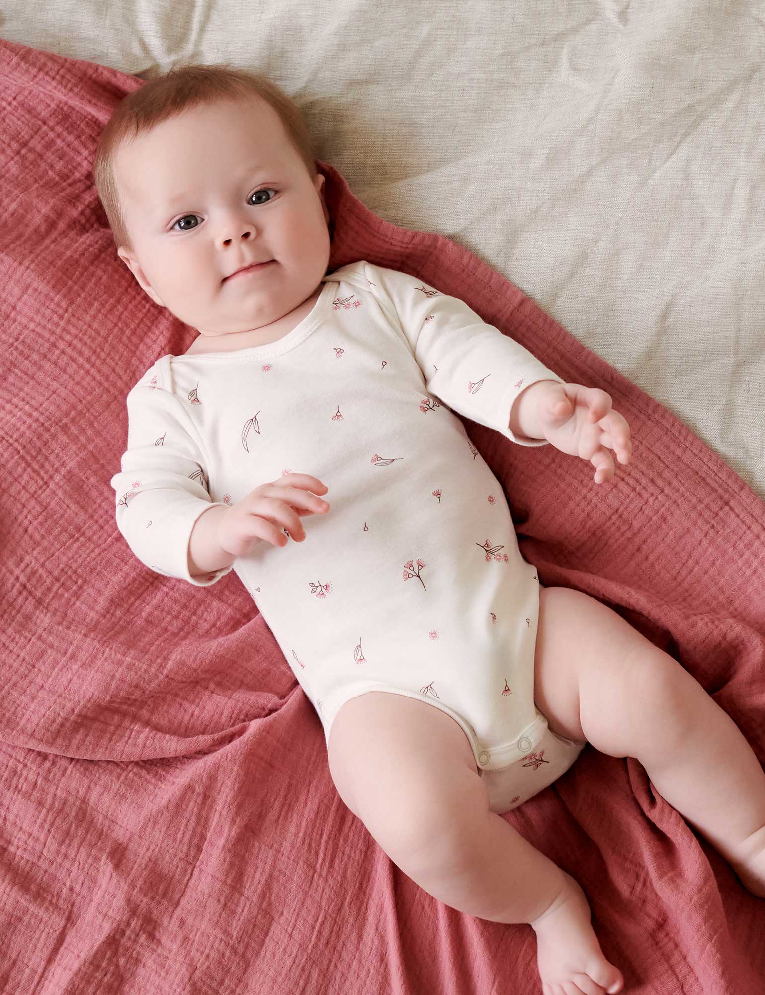 Our convenient 2 Pack Easy Neck Long Sleeve Bodysuit features our best-selling bodysuit, an essential layering style for newborns. The all in one style ensures the torso stays covered and warm, while the snap buttons at the nappy allow for easy dressing. Made from the softest 100% Organic Cotton making the bodysuit gentle and breathable on the skin. Each pack features an all over print and a classic stripe.