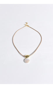 Metal Pod Pearl Drop Cord Necklace (Gold)