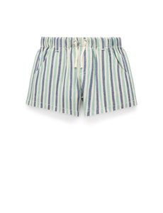 Our Pull On Striped Shorts are a comfy, easy care basic that are great for active little people. Featuring a classic all over stripe, and elasticated waistband for comfort! Made from 100% Organic Cotton. Pair with our Chameleon Relaxed Tee and matching Reversible Striped Bucket Hat for a cute outfit.   Elastic waistband for comfort Classic all over stripe Side hip pockets and back pocket Rope drawstring Made from 100% Organic Cotton Seersucker   This item is available in both baby & kids sizing. Perfect for matching with siblings, cousins and friends, or purchase multiple sizes for wear in future years.